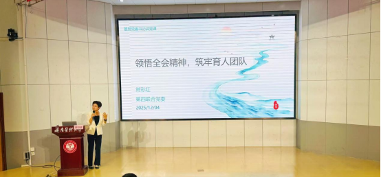 第四联合党委书记常彩红结合学校与党委工作实际,为大家讲授了一堂主题鲜明、内容丰富的专题党课。党课聚焦强化党性修养、筑牢思想根基、践行初心使命、勇于责任担当等方面,教育引导广大党员和教职工不断提升政治判断力、政治领悟力、政治执行力。她特别指出:“没有完美的个人,只有完美的团队。让我们大家共同努力,心往一处想、劲往一处使,携手打造一支团结、和谐、富有凝聚力和战斗力的优秀团队,为推动学校事业高质量发展贡献更大力量。”