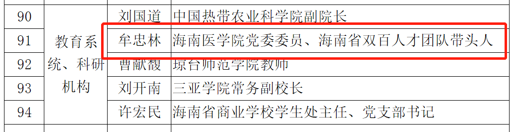 我校党委委员、海南省医学科学院办公室主任牟忠林荣获教育系统、科研机构类别的先进个人荣誉称号,受到通报表扬。