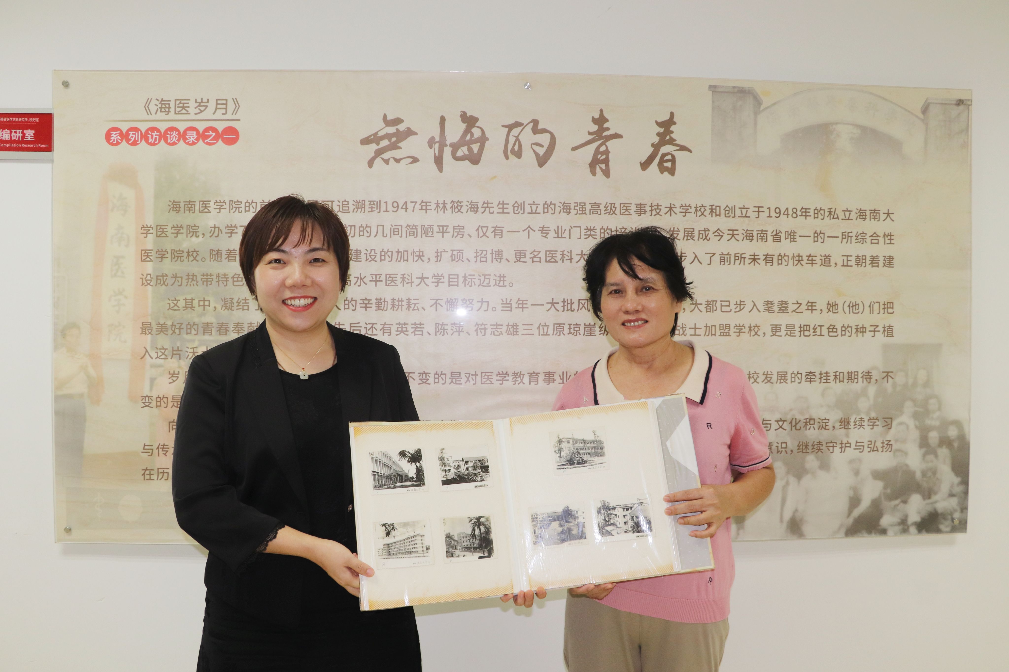 近期,学校第一附属医院呼吸内科原护士长周碧琼老师专程来到学校图书档案馆,将一套珍藏多年的建筑照片郑重捐赠给档案管理中心。这套照片(7张)与此前校友们接力寻回的2张校门照片一道,共同拼合了一幅完整图景,填补了学校在“海南大学医学部”时期的影像空白。图书档案馆副馆长李咪代表档案馆接受赠物,并对所有参与此次寻档行动的师生校友表示衷心感谢。
