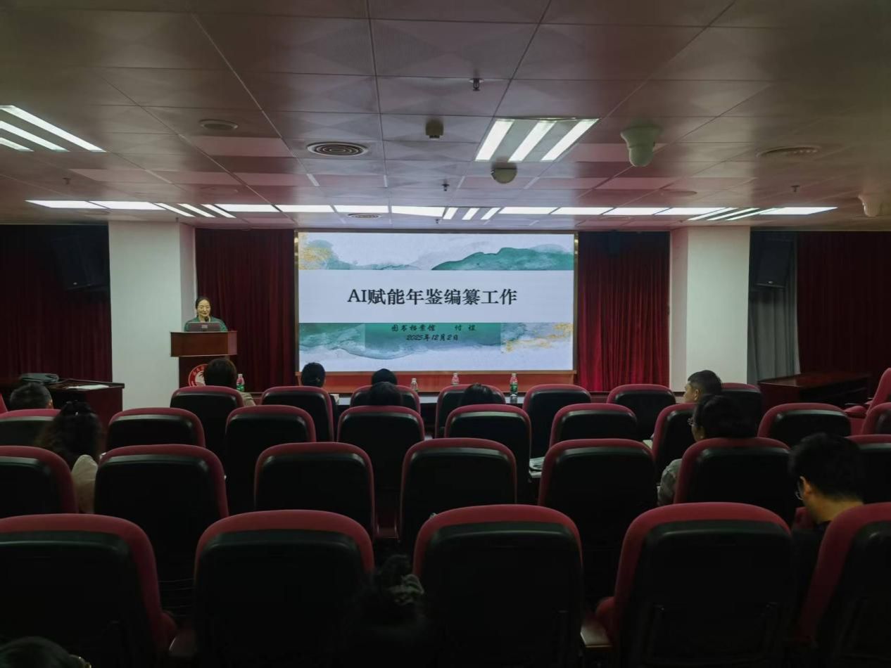 随后,图书档案馆付煜老师作 “AI 赋能年鉴编纂工作” 专题交流,介绍了AI在资料采集、内容辅助撰写、智能校对等场景的应用,分享 Kimi 智能助手的实践案例,展示 “AI 初改+人工审核” 的创新协作模式,为提升编纂效率提供新思路。