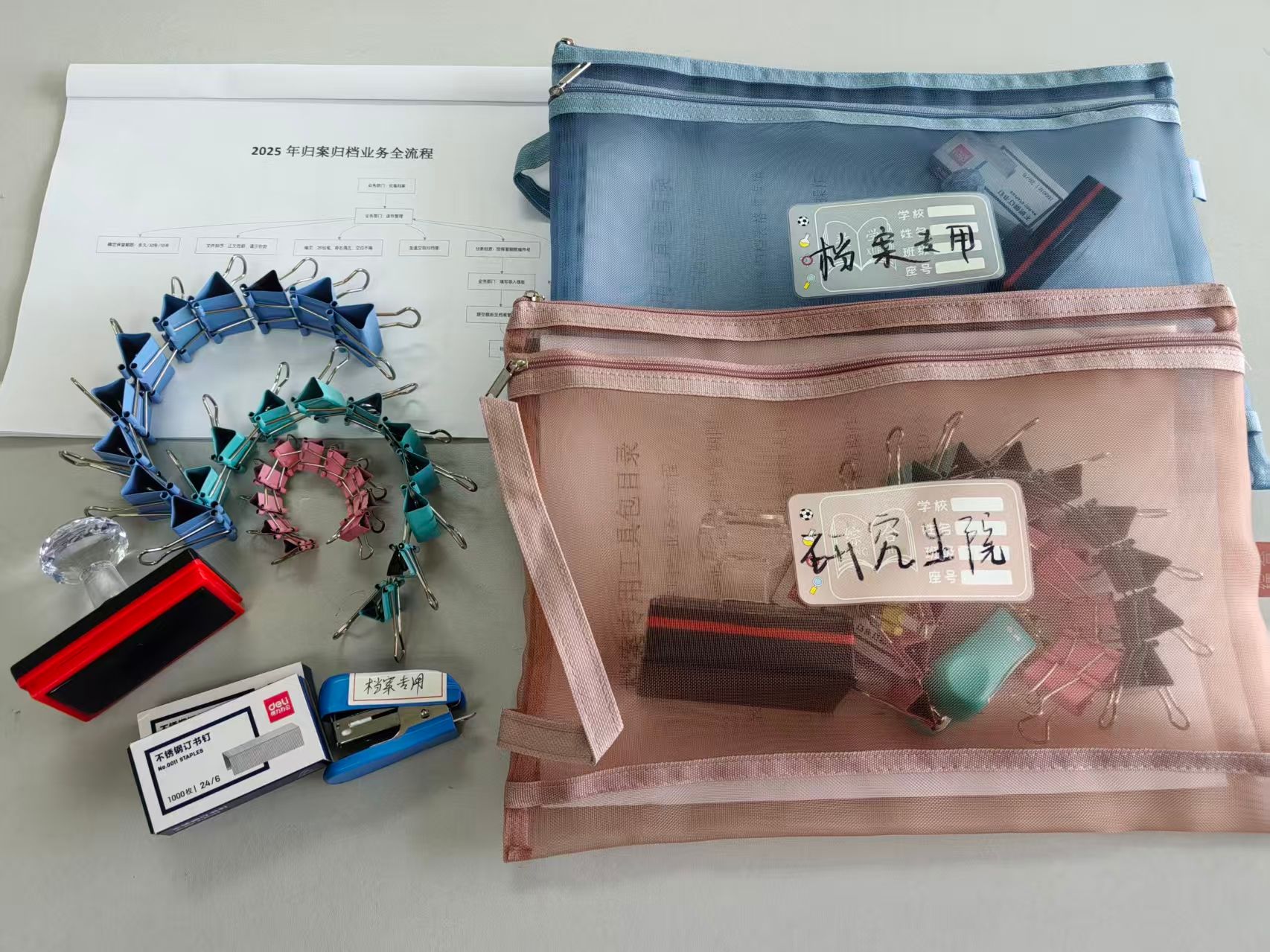 “上门办”不仅是一句口号,更落实为可预约、可落地的服务机制。中心同步开通线上预约通道,各部门可通过在线表格按需预约帮扶服务,实现需求与资源的精准对接。与此同时,中心为参会单位统一配发档案专用工具包,内含工作流程图、标准化归档说明、实操手册及实用整理用品,从资料指导到硬件保障,为二级部门档案工作人员提供全方位支撑。
