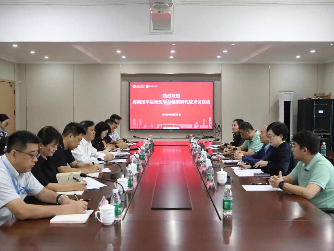 9月29日上午,海南国平运动医学与健康研究院名誉理事长李国平一行到访我校,就双方合作开展座谈交流。我校副校长邹卫国、各相关职能部门负责人参加会议。双方就共建运动医学与健康实验室、推动体卫融合、促进医教研产协同发展等议题展开深入交流并达成多项共识。