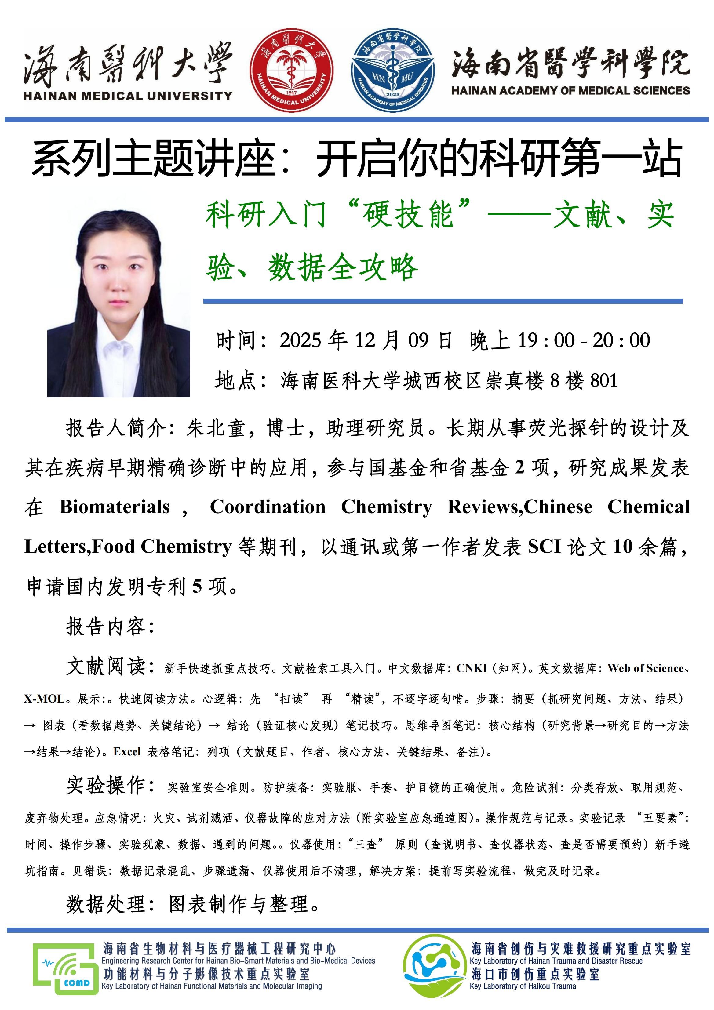 海南医科大学西英格兰学院科研启航计划系列主题讲座-开启你的科研第一站 科研入门“硬技能”—文献、实验、数据全攻略 朱北童