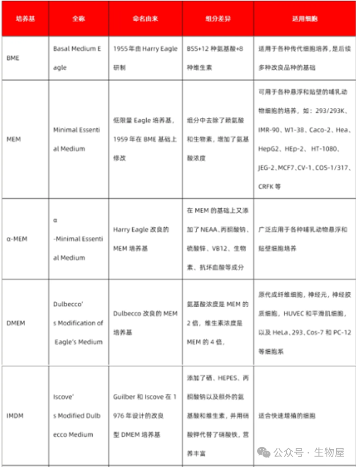 5)其他成分:肽、核苷、嘌呤等。可帮助细胞的克隆化培养及维持某些特殊细胞系的生长。