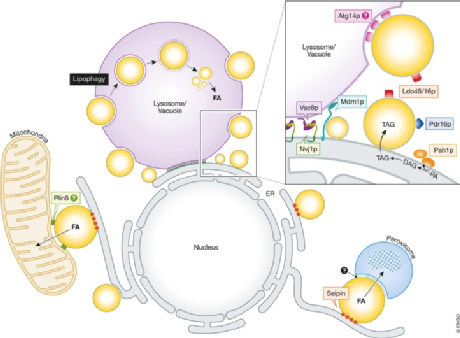 LDs起源于ER,其磷脂单层膜直接来源于ER膜脂的局部膨胀与芽生。ER膜蛋白(如Seipin、MOSPD2)通过调控脂质合成与膜曲率,决定LDs的形态与分布。ER与线粒体通过“线粒体相关内质网膜”(MAM)形成物理连接,促进钙离子(Ca²⁺)信号传递与脂质合成。