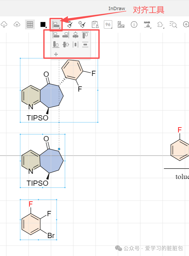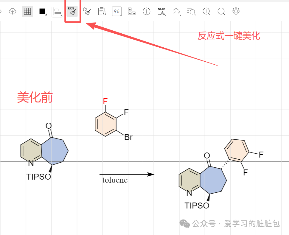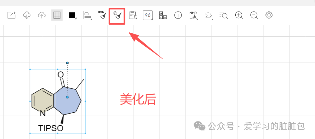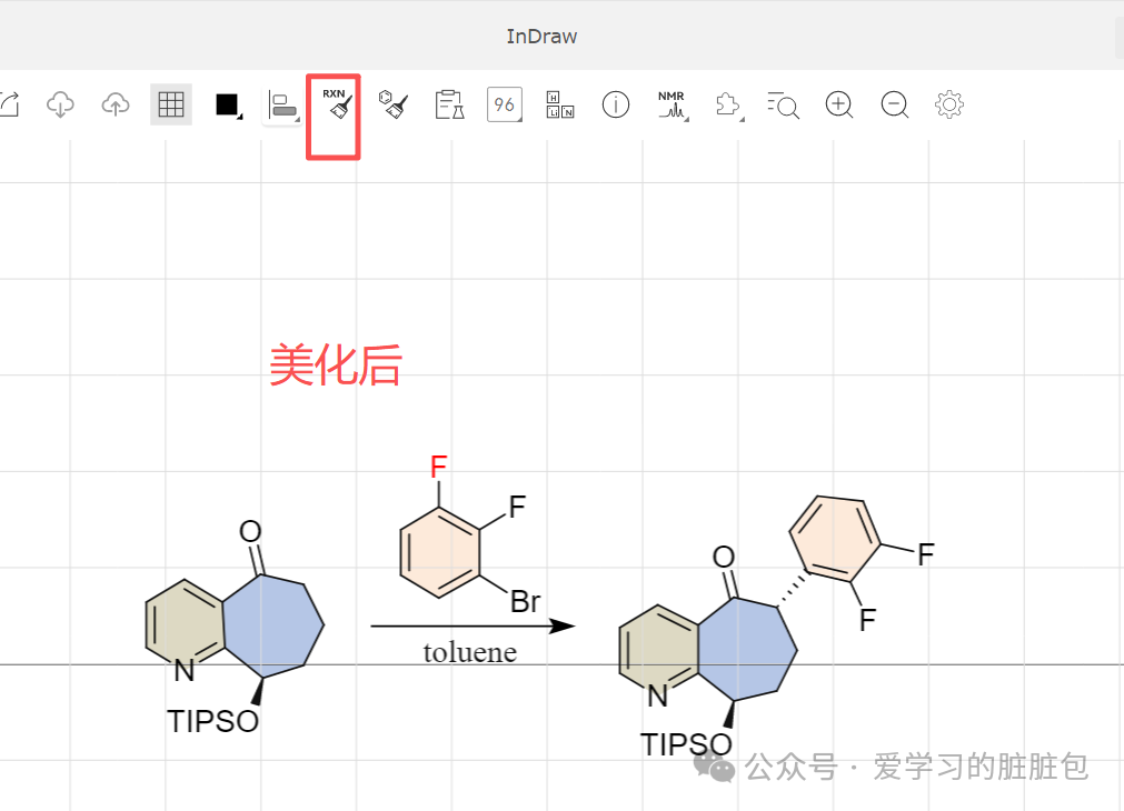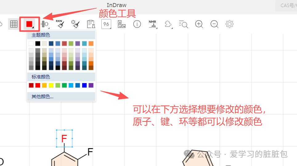 InDraw 还可以给环和键添加背景色,使结构更加美观InDraw这款软件还是很不错的,国产软件进步很大,有些功能虽不及ChemDraw,但是总体还是很不错的,对新手更加友好,而且还有强大的图像识别能力,能减轻不少工作量。