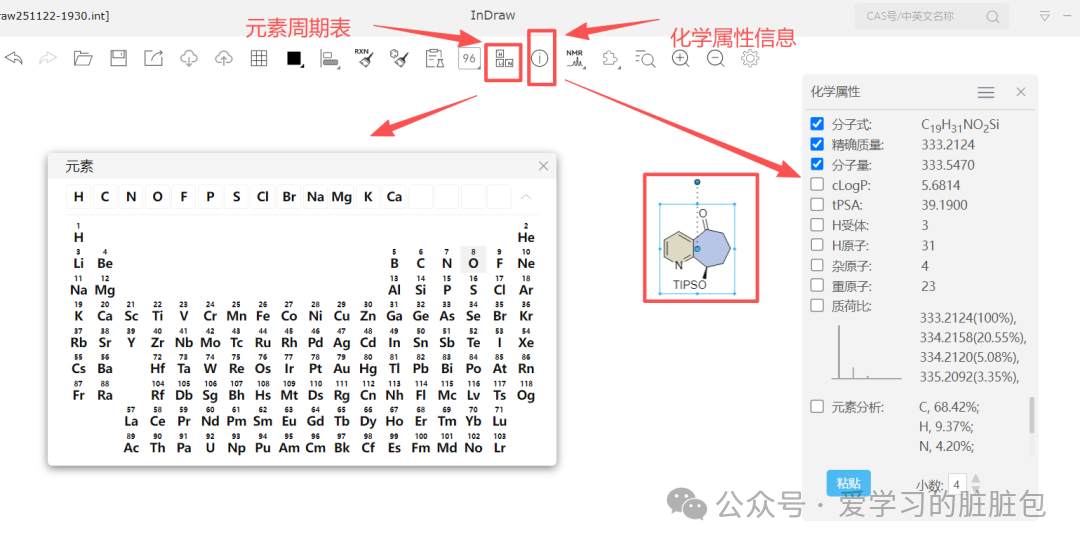 InDraw 同样有分子信息,分子量。分子式等,可以选择粘贴,也可以查看质荷比。
