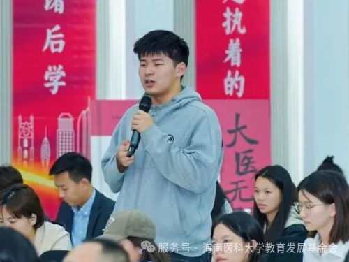 陈国强在致辞中对书籍作者、出版方以及捐赠方表达感谢,认为在海医举办这次活动传达了对海南自由贸易港建设的支持、对海南医科大学的深厚情谊。他深情回顾了与恩师王振义院士相处的温暖事迹,表示从青年时期聆听报告萌生向往到攻读硕士期间在老师指导下的成长,深切体会到“仁心仁爱、敢为人先”的精神,学习到“承诺是金”的契约精神。他强调,人无精神不立,国无精神不强,校无精神更不会强,期望书籍能够将“博极医源、精勤不倦”精神传递到海医青年心中,激励他们在医学道路上坚守初心、勇担使命。
