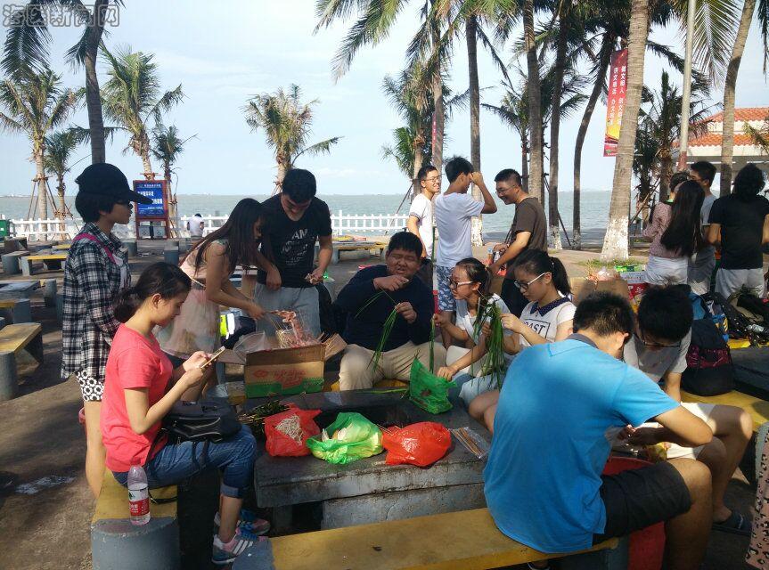 7日上午,ISU各个部门部长带领我院男生到市场采购食品、烧烤工具等。下午2点,自愿参与本次联谊会的41名同学坐上了大巴车,伴着欢声笑语,一路同行到了海边。