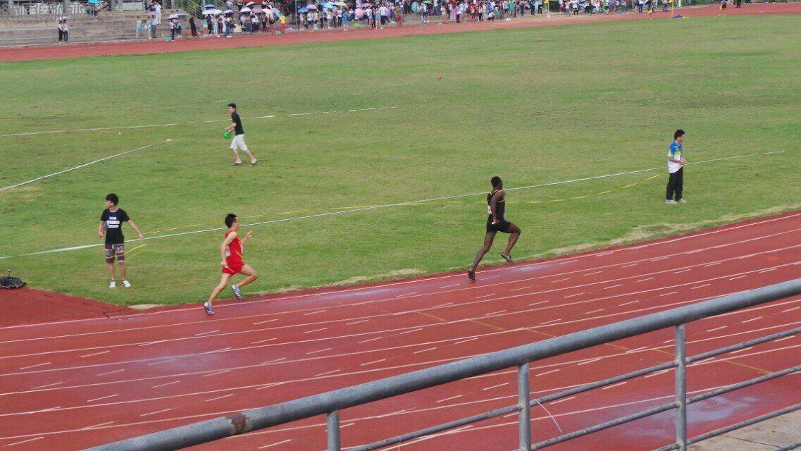 最值得一提的就是4*100米决赛前夕,留学生自己组建的拉拉队在跑道旁放起了他们的民族音乐,跳着欢快的舞蹈,高声呼喊着运动员的名字,为运动员们加油打气。裁判的哨声一响,拉拉队的女生们就吹起了号角,象征着前方的胜利。运动员们也像是离弦的箭,脚下似乘着风,毫不犹豫奔向下一棒。我院运动员从第一棒开始就与别人拉开了差距,并一直领先着优势。场上的欢呼声、加油声此起彼伏。我们每一位观众的心跳都被他们摆动的臂膀,跨越的步伐牵动着。在最后一棒的冲刺时,留学生Jeff在拿到接力棒的瞬间就立马冲向终点。最终我们的运动员以绝对的优势拿下了男子4*100的第一名。