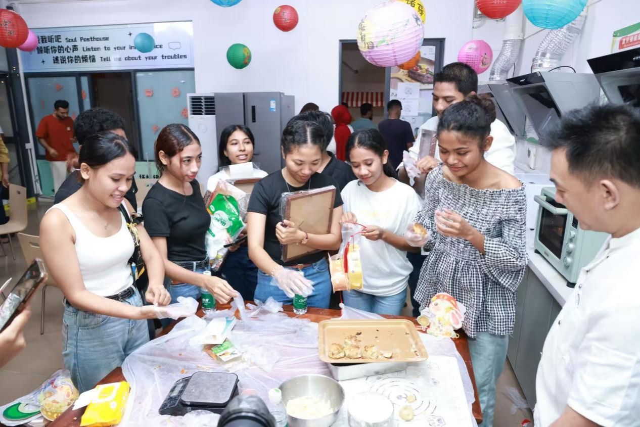 在月饼制作环节,留学生们亲手制作了造型精致的冰皮月饼,通过揉面、包馅、压模等操作,体验了月饼制作过程。过程中,师生在交流技巧中体会“以食寄情”的节日内涵,活动后还分享了中秋感悟,使月饼成为联结中外情感的纽带。