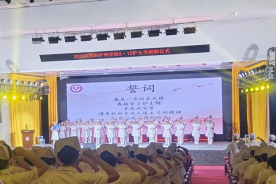 国际护理学院蔡小霞副院长带领全体同学进行宣誓
