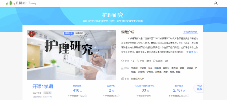 《护理研究》是海南医科大学护理学本科专业特色课程,获海南省高校教师教学创新比赛二等奖、省级线下一流课程、省级精品在线开放课程。它是在“健康中国”和“知识爆炸”时代背景下提高护生科研能力开设的护理本科专业核心课,在长期教学改革中,课程教学团队形成了“学习-实践-科研-服务”四位一体的教学模式,并有效推动了护生创新精神和科研能力发展。在课程建设过程中,为了突破这门科研工具课“课堂讲授枯燥乏味、学习兴趣不高”的教学痛点,教学团队张思琪教师创新性地将严肃游戏有机融入课堂教学,活跃了教学气氛,有效提升了学生的学习兴趣,激发了学习动力。