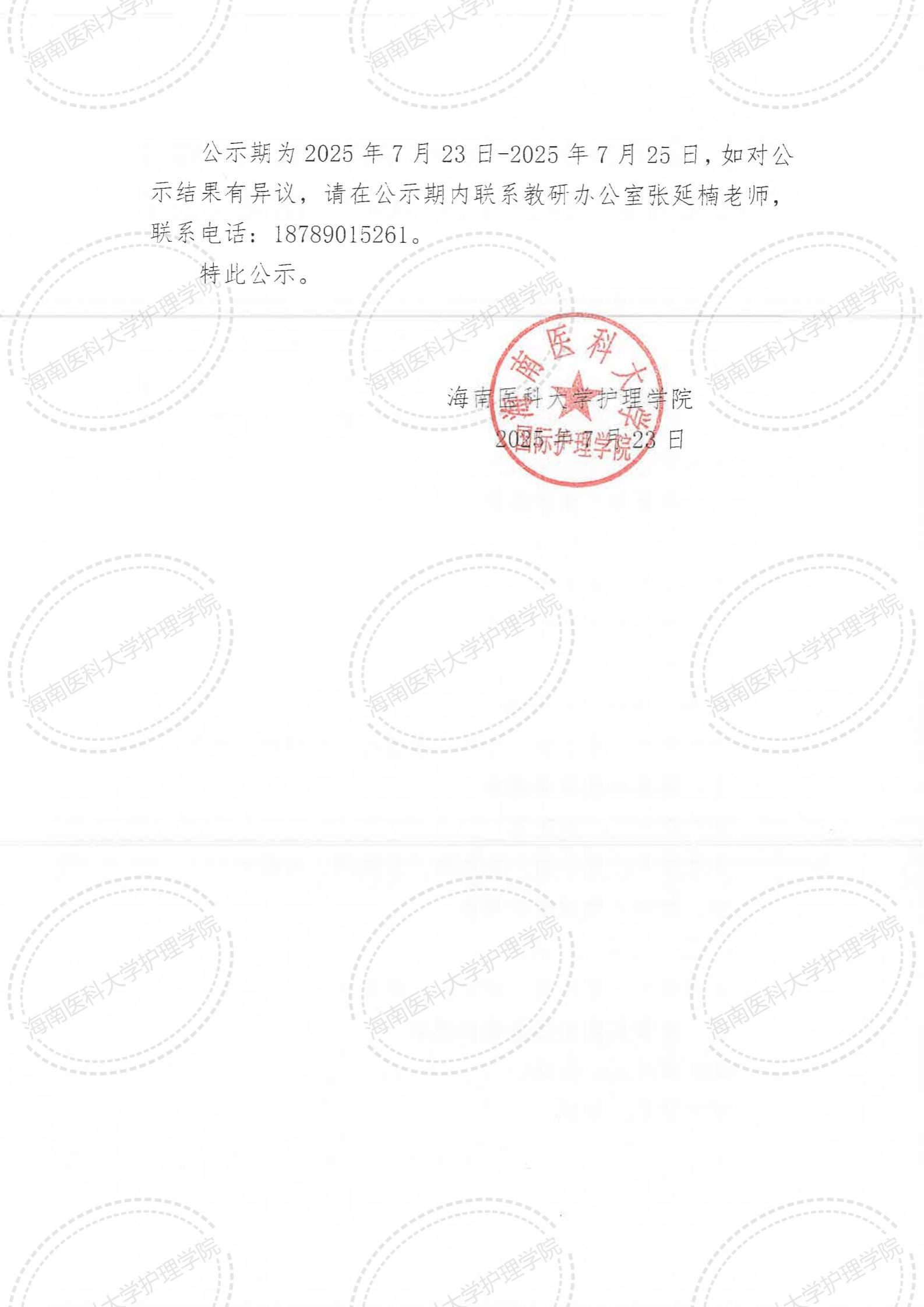 关于《海南医科大学护理学科科研团队建设与优化方案(2025 年试行版)》结果的公示