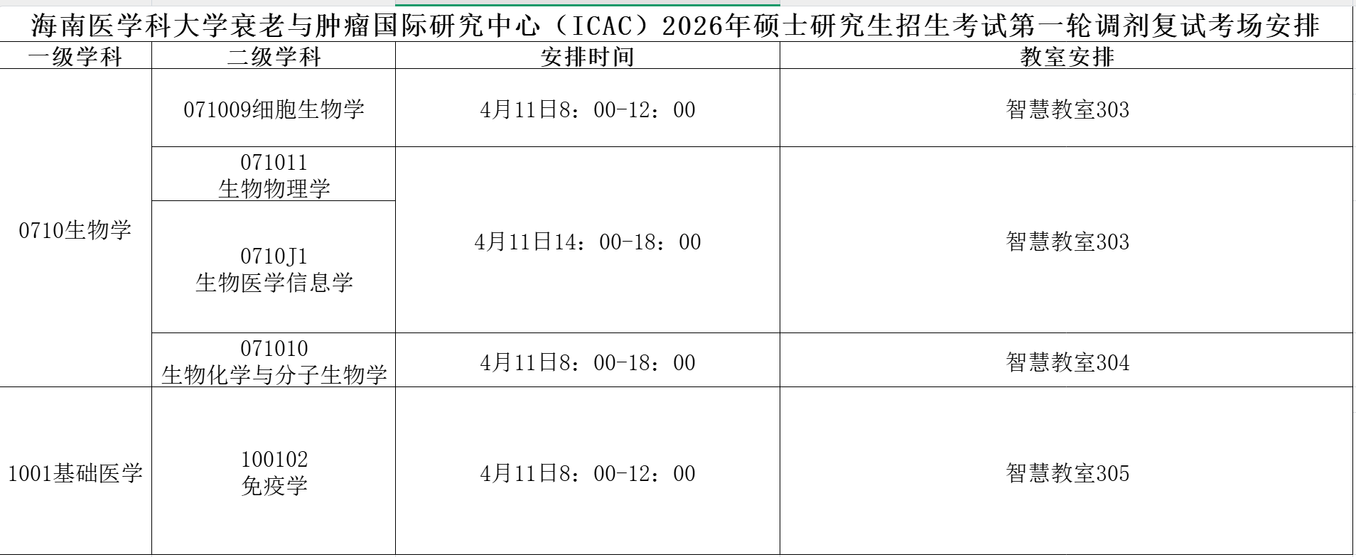 2026年海南医科大学衰老与肿瘤国际研究中心(ICAC)一轮调剂入围名单