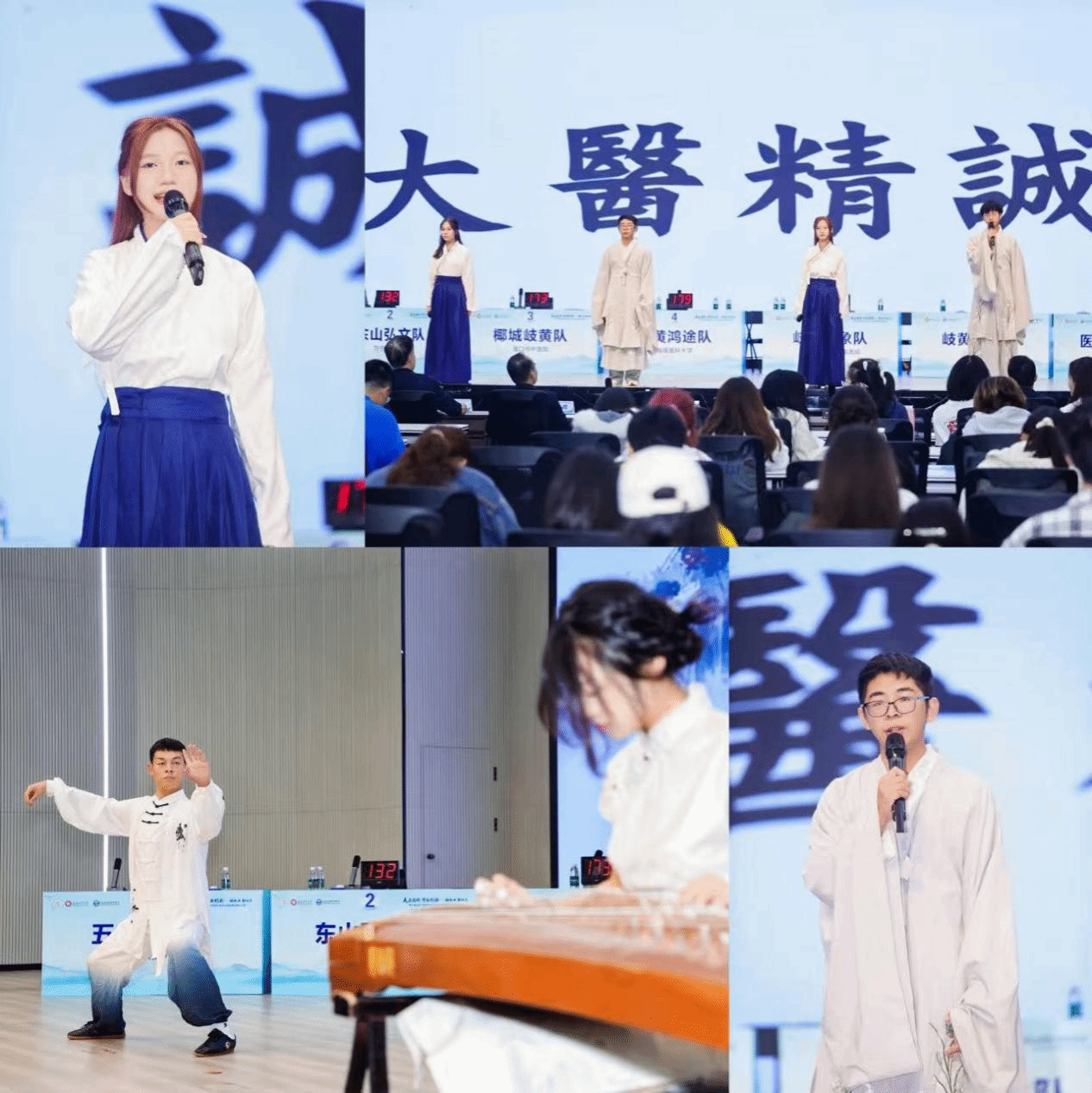比赛间隙,同学们带来了精彩的“大医精诚”主题朗诵与武术表演,将“先发大慈恻隐之心,誓愿普救含灵之苦”的医者初心娓娓道来,并把中医“治未病”的养生理念与中华武术的精气神融为一体,为紧张的赛事增添了浓厚的文化氛围。