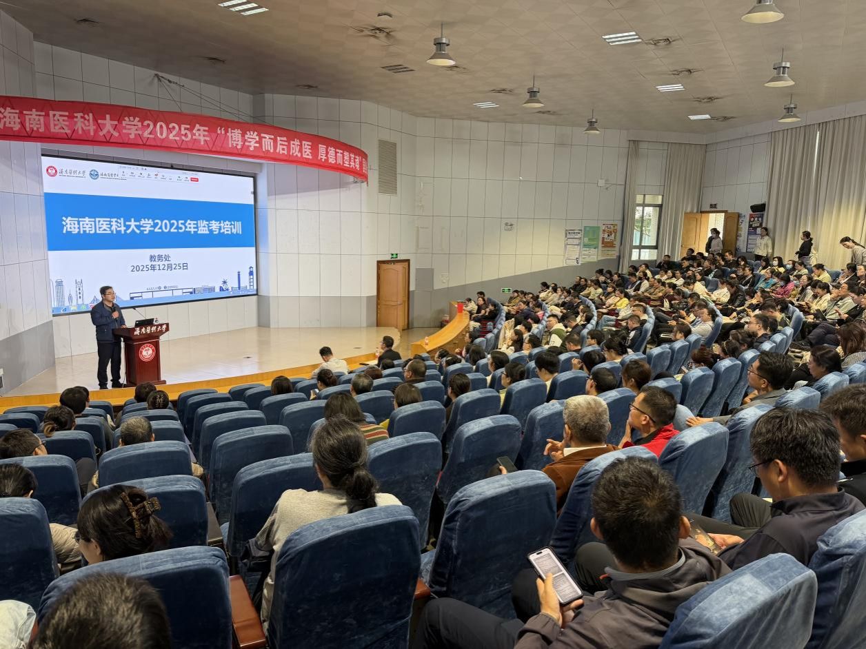为确保期末考试公平公正,强化监考人员责任意识,12月25日,海南医科大学教务处在城西校区立功厅举办2025年监考培训会。本次培训规模创近年新高,校本部及附属医院近600名教师、教学工作人员及医护人员通过线上线下结合的方式参与。