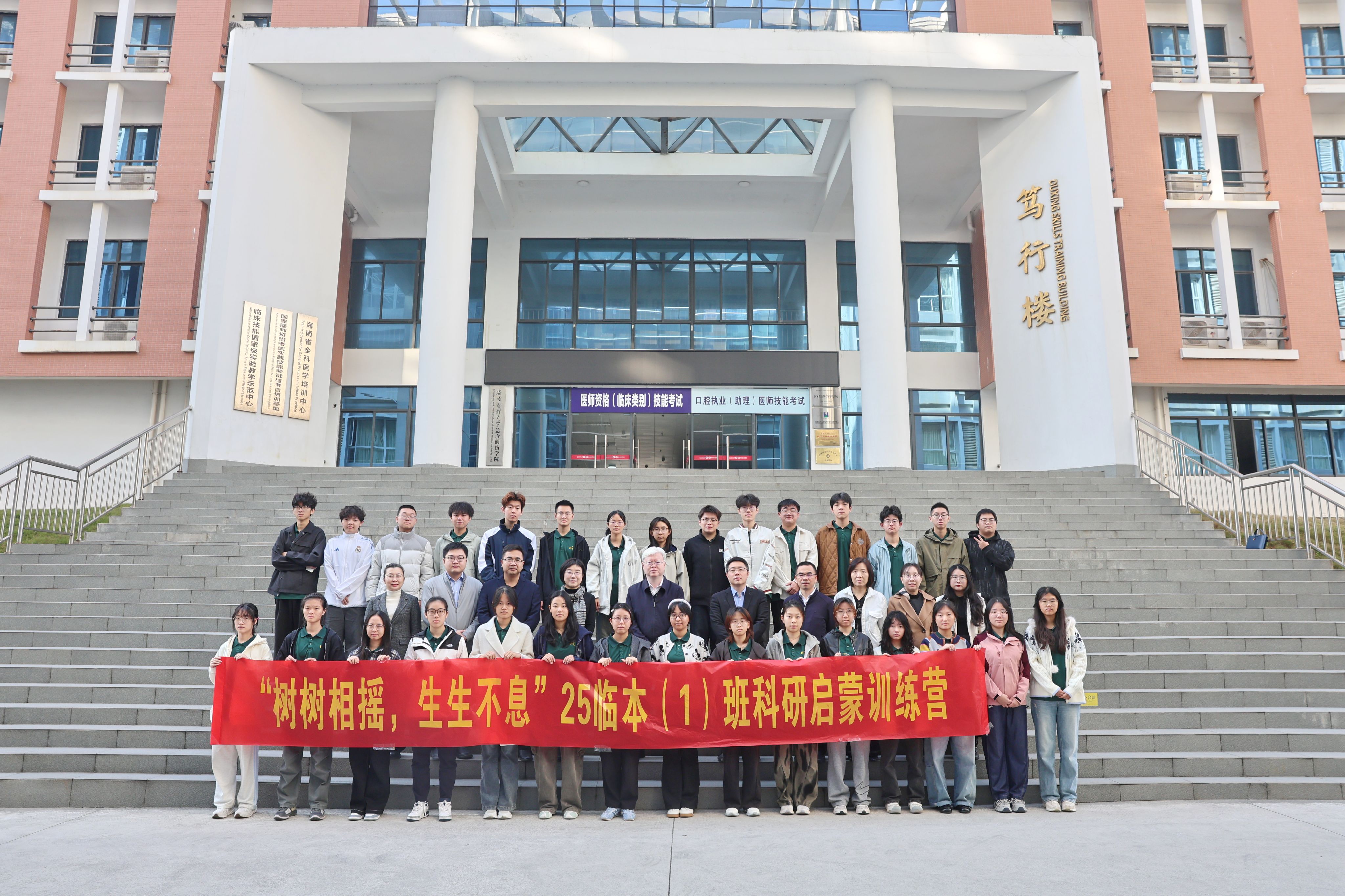 1月12日,海南医科大学临床医学院党委、教务处联合举办的“树树相摇,生生不息”系列科研启蒙训练营开营仪式在笃行楼报告厅举行。本次训练营向25临本(1)班(新医科班)学生,聚焦医学本科生科研思维早期培育,旨在搭建从课堂学习到科研实践的早期桥梁,是创新人才培养模式的一次重要实践。