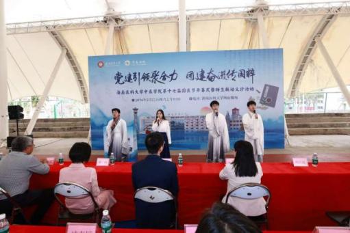 3月21日,海南医科大学中医学院第十七届国医节在学校风雨操场开幕。本届国医节以“党建引领聚合力 团建奋进传国粹”为主题,我校副校长、中医学院院长丁治国,第一联合党委书记郭向,第一联合党委副书记朱敏,学院党委委员、副处级辅导员孙学文,学院团委书记杨旭出席开幕式,与学院师生代表齐聚一堂,共赴中医药文化盛宴,共启国粹传承创新新征程。