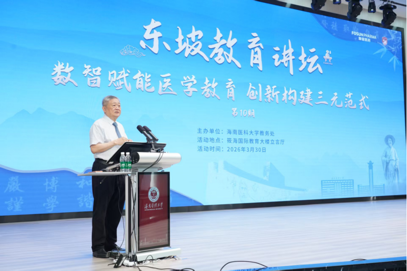 3月30日下午,海南医科大学第十期东坡教育讲坛在筱海国际教育大楼立言厅举办。本次讲坛聚焦医学教育数字化转型核心议题,特邀中山大学中山医学院生理学二级教授、医学教育发展中心主任王庭槐莅临主讲。学校副校长曾敏出席活动并致辞,各分管教学副院长、校院两级督导、教研室主任及一线教师齐聚现场,共探育人新范式。会议由教务处处长李其富主持。