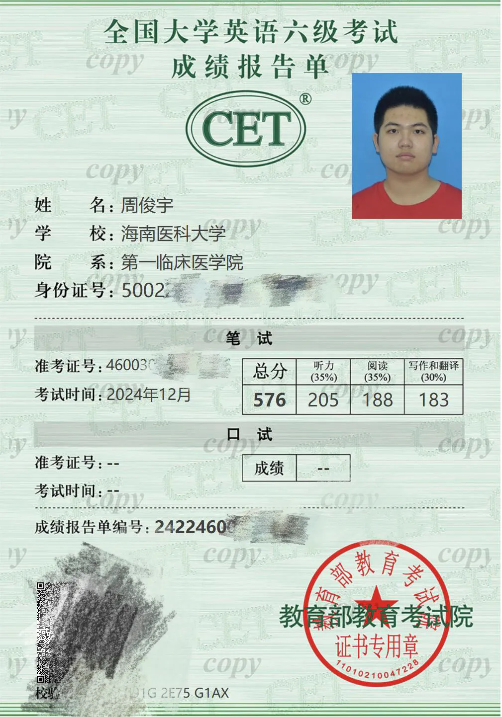 四六级成绩单