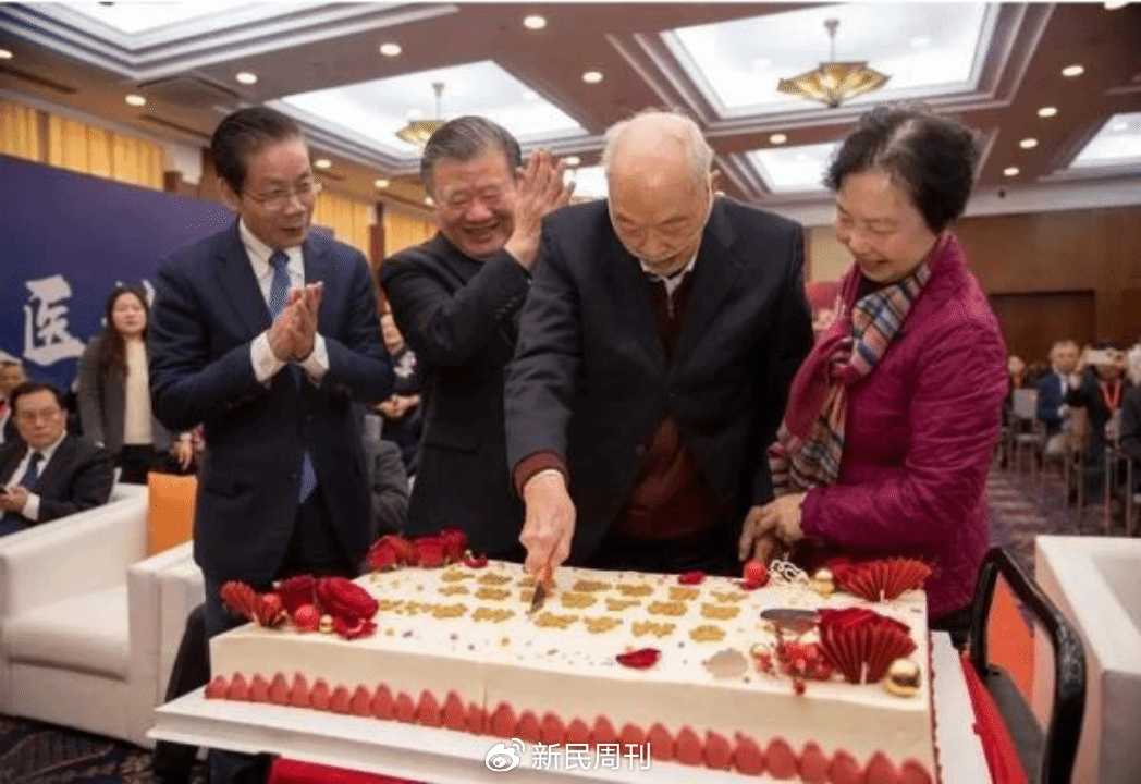 2023年王振义院士99岁生日时,与他的3名院士学生——陈竺院士、陈赛娟院士、陈国强院士一起庆祝