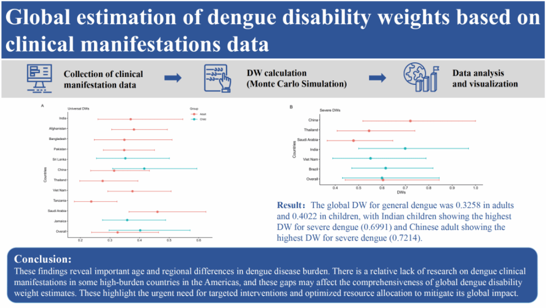 2025年6月9日,杨国静研究员团队在国际期刊《Infectious Diseases of Poverty》(JCR Q1, 中国科学院1区Top)发表了题为“Global estimation of dengue disability weights based on clinical manifestations data”(基于临床表现数据的全球登革热伤残权重评估)的研究成果。