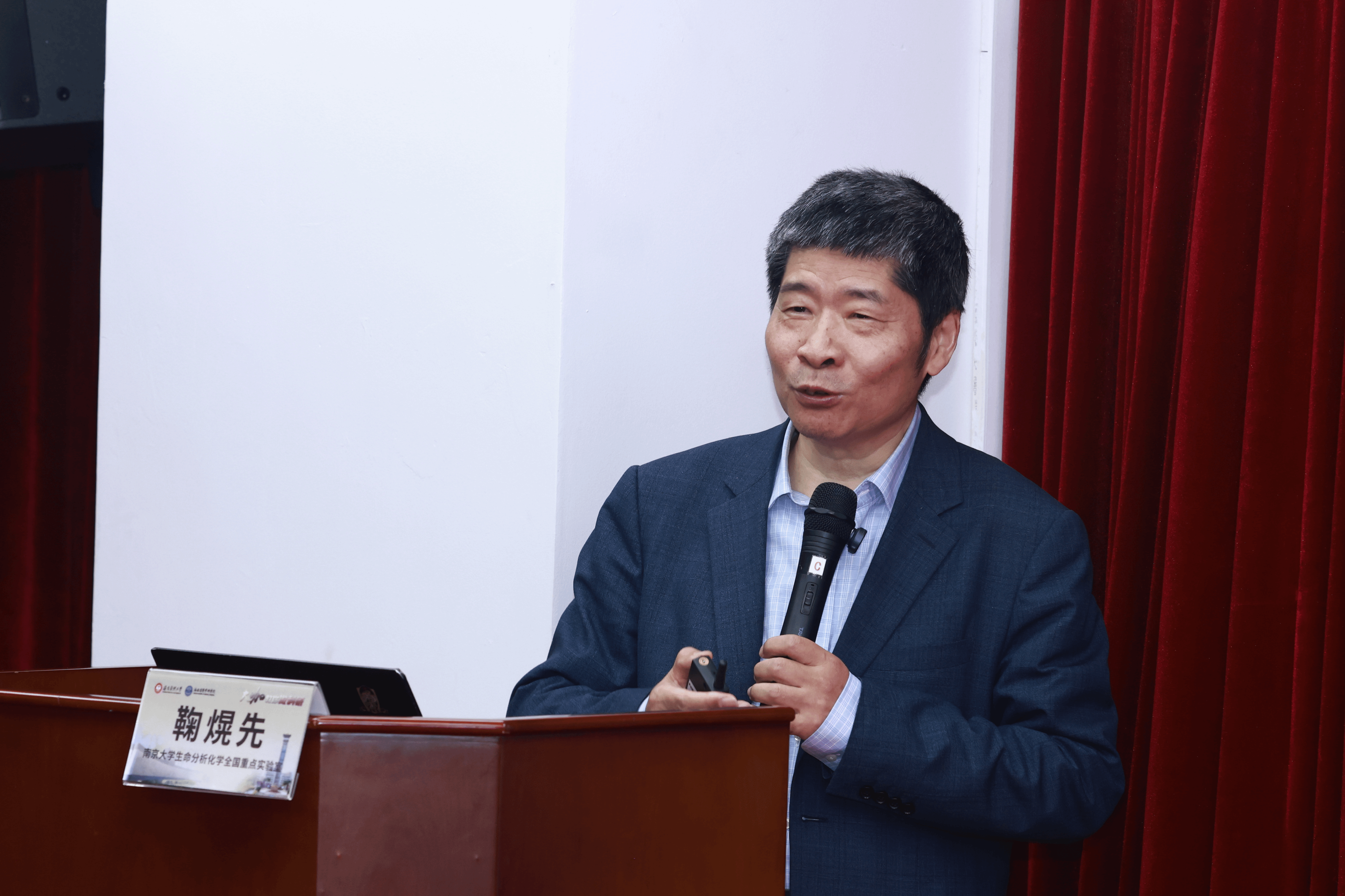 活动中,鞠熀先教授以《纳米生物传感:从体外检测到光谱成像的诊治应用》为题,结合自身数十年深耕生命分析化学领域的科研经验,系统梳理了纳米生物传感技术从体外检测到光谱成像诊治应用的发展脉络,清晰阐释了“生命分析化学”立足生命与健康化学、构建精准测量新理论新方法新技术、助力重大疾病诊治与生命科技突破的学科内涵和核心使命。鞠教授团队以电化学、化学发光、荧光、拉曼光谱、质谱等多元技术为核心支撑,攻克信号放大、原位检测、多标志物联合检测等关键技术瓶颈,成功实现生物小分子、核酸、蛋白质、细胞表面糖基等多类疾病标志物的体外精准检测、原位动态分析与可视化呈现,并将研究成果进一步拓展至细胞糖质重塑、免疫治疗、诊疗一体化等前沿应用领域,相关研究成果获得国际学界高度认可。报告中,鞠教授还分享了科研成果转化、学术专著编写与专业期刊创办的宝贵实践经验,完整呈现了纳米生物传感技术从基础研究到临床诊疗应用的全链条发展路径,为在场师生带来了深刻的科研启发。