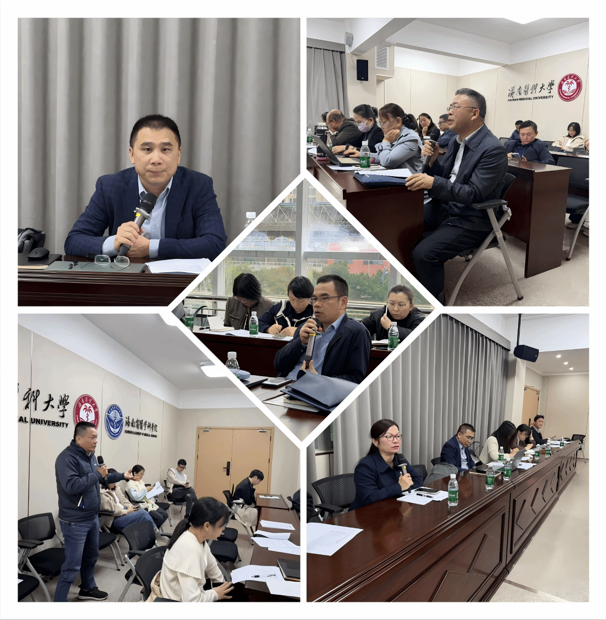 随后,各课程负责人分享教学经验与困难。基础医学课程中,生理学课程通过案例融合教学提升成绩,病理学目前显现师资不足等情况进行了交流,预防医学刚成立预防医学中心,师资经验不足,临床技能课程里,技能操作通过率低,模拟训练场景待完善,医学人文与中医学课程内容与考试结合度低,需增加案例分析与技能模拟。