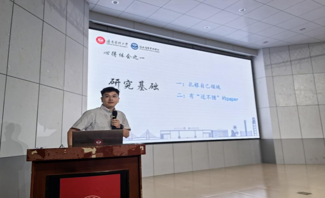 随后,2025年国自然立项教师代表上台分享经验,为在场教职工提供了“接地气、可借鉴”的实战指导。青年科学基金项目获得者蒋童蒙从“研究基础积累”与“创新性挖掘”出发,强调“扎根领域、紧跟热点、学术会议”的重要性,建议申报教师依托团队协作打磨标书,同时期待学院加大对青年人才的启动经费与团队支持;地区科学基金项目获得者王晓兵强调“创新是核心竞争力”,建议提炼关键科学问题要贴合研究特色、深入分子水平,同时坚决规避“错别字、非专业术语、模糊概念”等“一票否决”式错误,做到“先打动自己,再打动别人”。
