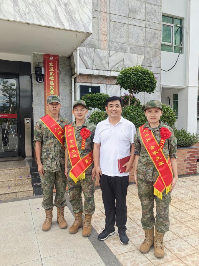 李春报书记与其他领导及辅导员,一同向包括符胜波、曾志鹏、黄凤男在内的新兵表示祝贺。他叮嘱3位学院学子,要牢记母校和学院的期望,在部队严格要求自己,尽快适应军营生活,完成从学生到军人的蜕变,以优异表现为校争光、为军添彩。