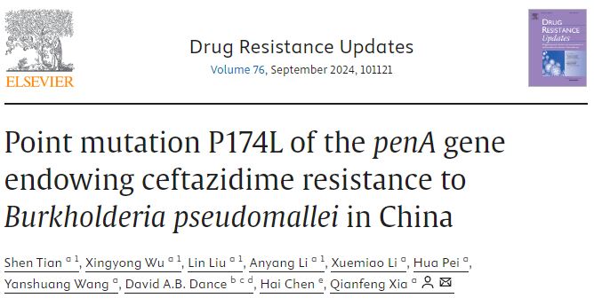 7月10日,热带医学院夏乾峰教授团队在《Drug Resistance Updates》在线发表题为“Point mutation P174L of the penA gene endowing ceftazidime resistance to Burkholderia pseudomallei in China”的论文。