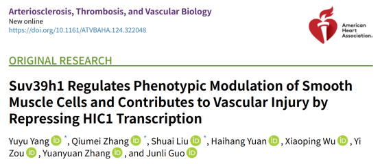 ATVB郭峻莉团队与合作者发现Suv39h1下调HIC1转录调节VSMC表型转化介导血管狭窄