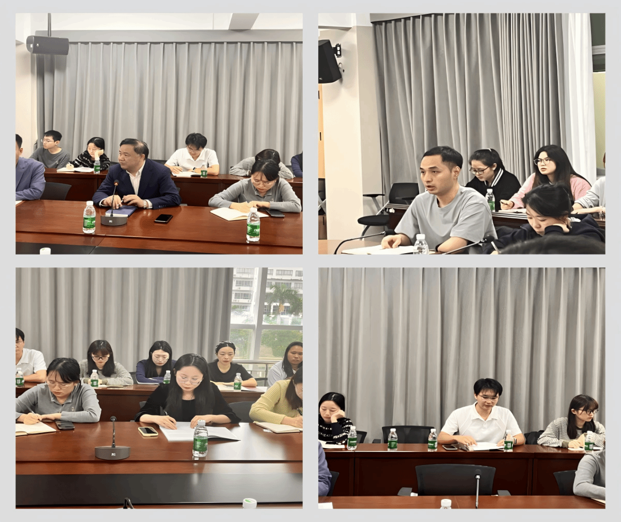 党课后,紧接着开展学习“党的二十届四中全会”精神感想的研讨,大家积极发言,邹卫国同志:在陈国强校长主持召开的学习会上已经学过一次全会精神,今天再次学习全会精神,通过学习意识到基层党组织可以组织更加丰富的组织生活,例如把科研业务与党建相融合,我也多参加进来。全会上提到十五五规划时,我想到也印证了毛泽东同志说过的愿景。我们科研人员也要认真研读全会内容,结合自身工作实际,在科研条件相对落后的地方,如何建设高质量高水平的大学。