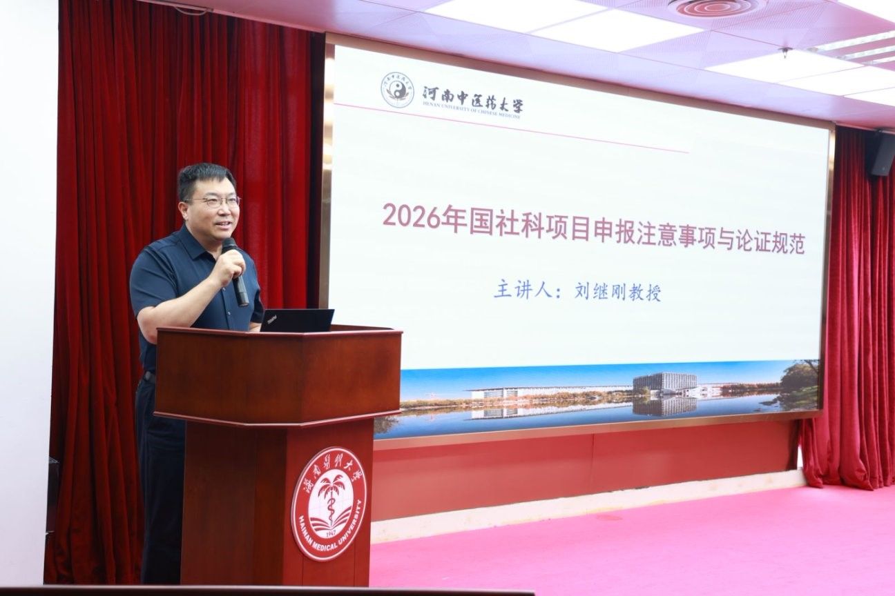 12月5日,我校第26期“大咖教你做科研”在图书馆七楼学术报告厅顺利举行。本期特邀河南中医药大学管理学院院长、仲景骨干学者、国家社科基金评审专家刘继刚教授担任主讲嘉宾,马克思主义学院院长周书俊主持讲座,相关领域师生200余人现场参会。
