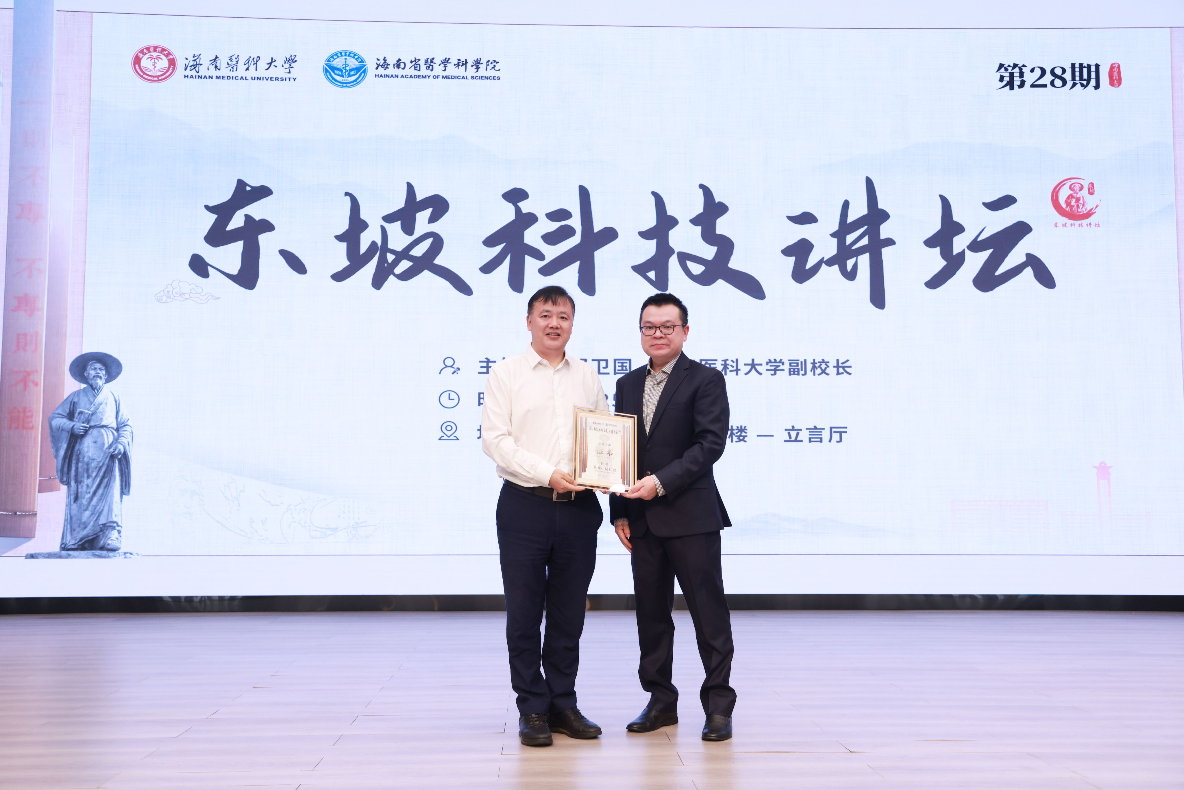 2025年6月6日,我校第28期“东坡科技讲坛”在筱海国际教育大楼立言厅举行。本期主讲嘉宾英伟博士来自加州大学圣地亚哥分校医学院。邹卫国副校长主持讲坛,科技发展研究院院长郭峻莉、副院长李凯、副研究员张晓钿到场参加讲坛。