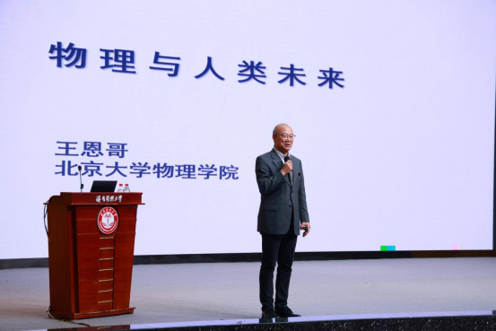 讲座中,王恩哥院士以《物理与人类未来》为主题,从物理学起源展开论述:首先梳理经典物理学阶段伽利略、牛顿的核心贡献,进而阐述近代物理学中量子力学、相对论的建立历程,同时介绍X射线、电子等关键发现及凝聚态物理全量子效应的前沿探索方向;此外,还系统分析了半导体、晶体管、集成电路的技术发展脉络,以及硅谷崛起背景下全球芯片产业的竞争格局。院士强调,物理学通过技术变革持续深刻影响人类生产生活,并重申对物理世界探索的学术价值与科学思维方式的重要性。