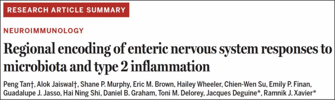 10月30日,海南医科大学(海南省医学科学院)新药研发与转化中心谭鹏研究员以第一作者身份,在国际顶级期刊《Science》正式在线发表题为“Regional encoding of enteric nervous system responses to microbiota and type 2 inflammation(肠神经系统对肠道菌群和2型炎症反应的区域编码)”的研究论文。肠道不仅接受大量外来神经支配,其内部更存在着由肠神经系统(ENS)构成的内在神经元(iEAN)网络,这些神经元通过黏膜下神经丛(...