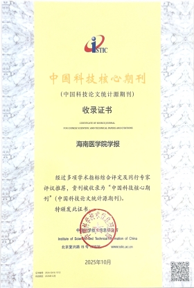 2025年10月29-30日,由中国科学技术信息研究所主办的“2025年中国科技论文统计结果发布会” 在北京国际会议中心隆重举行。《海南医科大学学报》再次入选“中国科技核心期刊”(中国科技论文统计源期刊),这不仅是学报连续多年获得的殊荣,更标志着学报在国内医学学术期刊领域的地位得到了进一步的巩固和认可。此次再度入选“中国科技核心期刊”,是对学报过去工作的肯定,更是对学报未来发展的鞭策。学报将以此为新的起点,继续秉承严谨求实的科学精神和精益求精的工匠精神,...