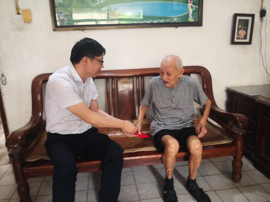 庆祝中国共产党成立100周年之际,根据省委组织部《关于协助做好“七一”前夕走访慰问老干部活动的通知》(琼老通[2021]10号)文件精神,在“七一”前夕,我校党委副书记、校长杨俊等校领导分别走访慰问符志雄、陈萍、陈岳曼、郑书民、黄逸民等5位离休老干部,悉心了解他们的身体健康状况和生活、医疗待遇等情况,同他们开展轻松活泼的思想交流与沟通,感谢老同志为学校发展打下坚实的基础,做出的贡献,希望他们紧跟时代发展的脉搏,始终保持“政治坚定、思想常新、豪情满怀”的心态,继续关心和支持学校的发展建言献策,助力新时代海南自由贸易港建设的健康发展。校领导分别给老同志们送去节日慰问金和慰问品,同时颁发“光荣在党50年”纪念章,转达省委省政府及学校党委对老同志的关心关爱和问候。离休老干部们感谢组织对他们的关心和爱护,让他们有荣誉感、有幸福感。
