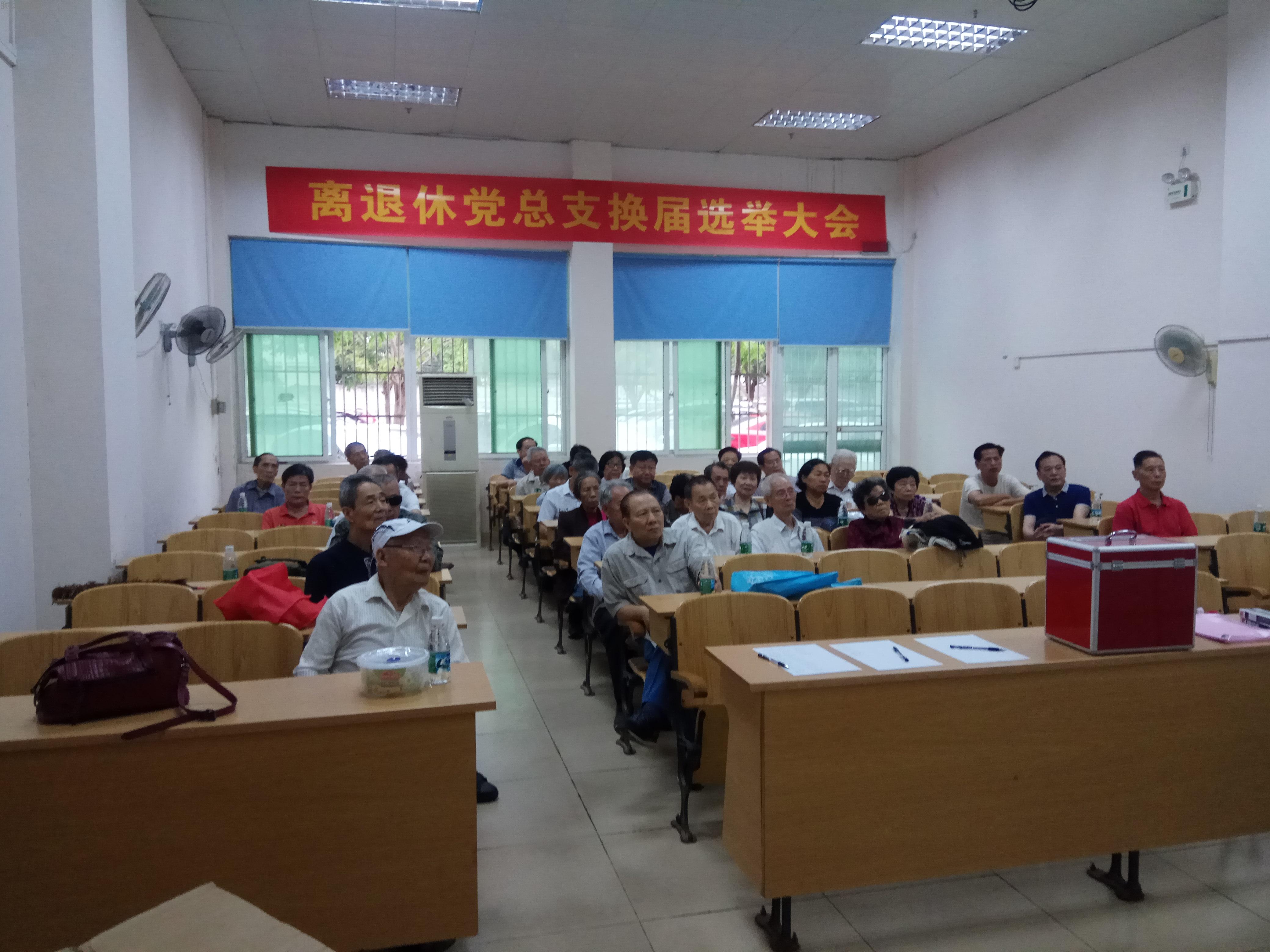 2017年4月12日,离退休党总支在龙华路技能中心105教室举行换届选举大会。会议由党总支书记成晓东主持。我校原党委书记裘森芳,副校长陈玉民,离休党员郑书民、符志雄、谢喧、陈萍、陈岳曼等离退休党员代表38人出席大会。