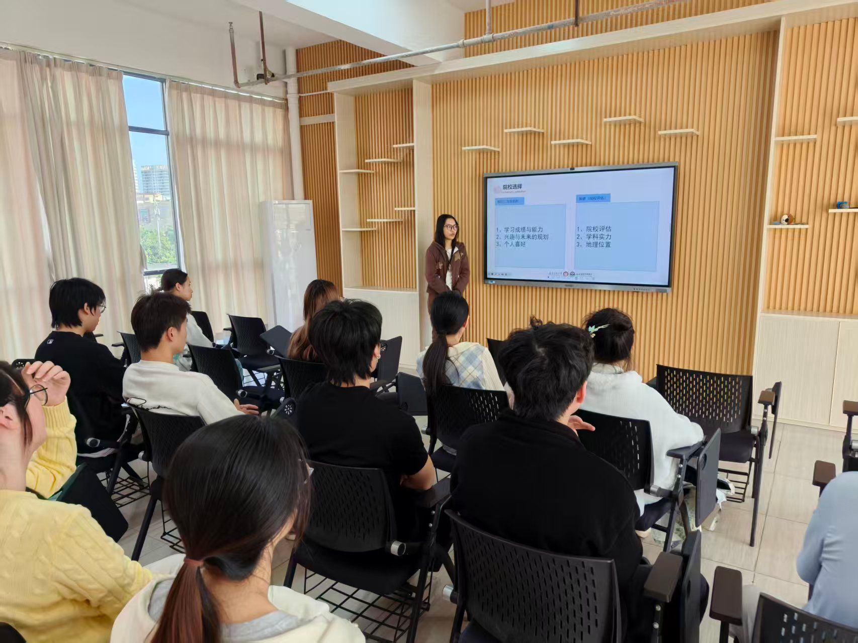分享会上,符娟学姐围绕目标院校选择、复习规划、复试技巧及心态调节等内容,结合自身经历进行了分享。针对专业课复习,她建议同学们立足教材,结合真题梳理知识体系。在随后的互动环节,她一一耐心解答并进行了现场答疑,大家通过问答互动获得了针对性的考研指导和建议。