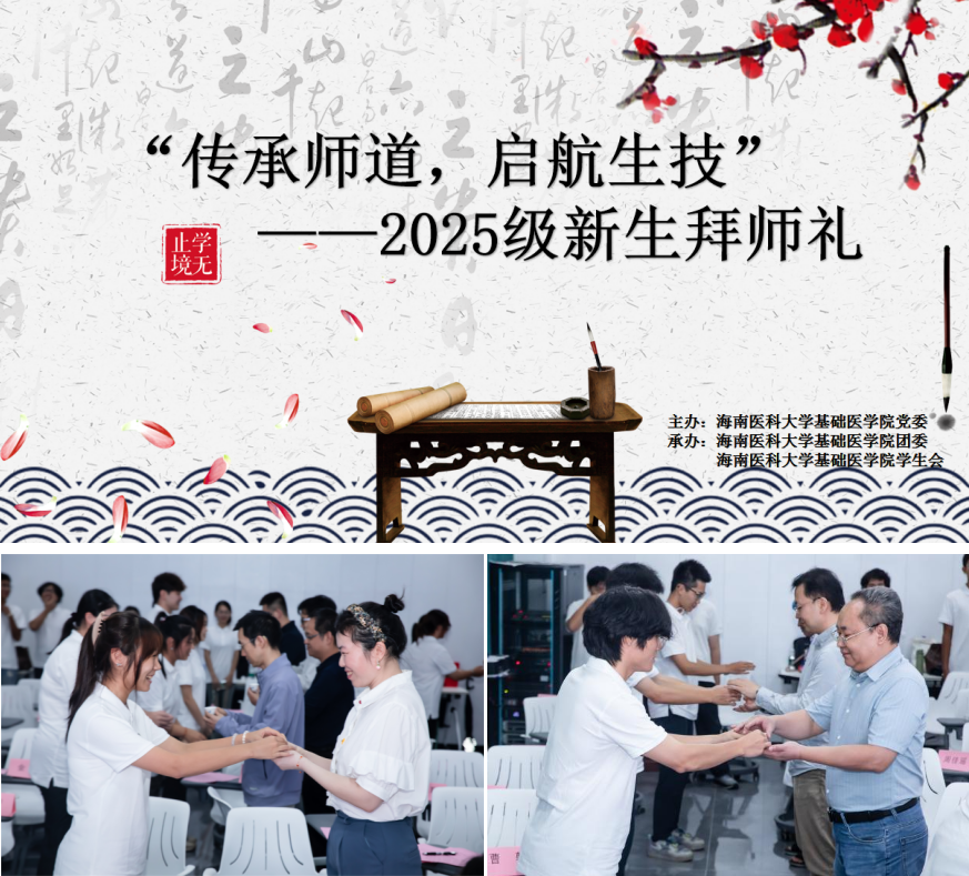 拜师礼虽简,却意蕴深长。它不仅是一场仪式,更是一次精神的洗礼、一次学脉的接续。作为“点亮基础”系列活动的重要组成部分,此次拜师礼以师道之光点亮初心,以传承之火照亮前路。愿2025级生物技术专业新生以师为引、以梦为帆,在海南医科大学的沃土上,书写不负时代、不负师恩的青春篇章。