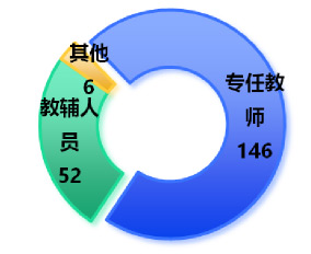 学院已形成一支结构合理、水平优良的师资队伍。现有在职教职工204人,其中专任教师146人(占71.6%)。专任教师中,具有博士学位者107人(73.2%),硕士学位者37人(25.3%);正高级职称42人(28.8%),副高级职称52人(35.6%);研究生导师50人(34.2%)。