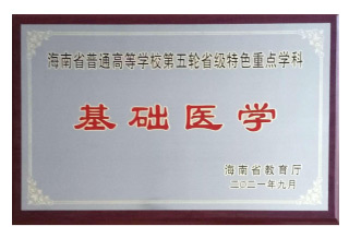 学院的基础医学学科为海南省特色重点学科,下设11个教研室,拥有1个省级特色实验教学示范中心、1个教育部重点实验室、2个省级重点实验室、1个联合实验室以及1个全国科普教育基地。学院承担人体解剖学、组织学与胚胎学、生理学、生物化学与分子生物学、细胞生物学、医学遗传学、医学免疫学、病原生物学、病理学、病理生理学、药理学、实验生理学、病原生物学与免疫学实验等课程的理论与实验教学。