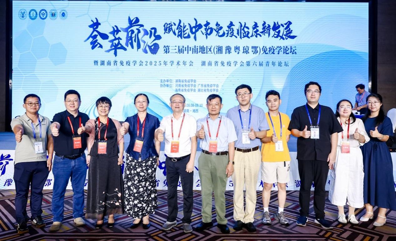 2025年8月9-10日,由湖南省免疫学会主办,海南、湖北、河南、广东省免疫学会协办的第三届中南地区(湘豫粤琼鄂)免疫学论坛在湖南湘西盛大举行。本次会议以“荟萃前沿,赋能中南免疫临床新发展”为主题,吸引了中南五省免疫学、临床医学及相关领域的知名专家学者齐聚一堂,共同探讨免疫学领域的前沿研究成果与临床应用。中国免疫学会理事长黄波教授、海南省免疫学会理事长郑少江教授、秘书长王华民教授等领导及专家代表200余名出席会议。