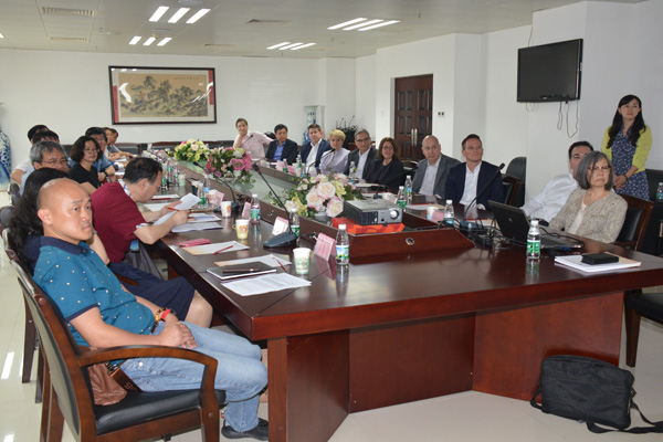 4月19日下午,美国联合医学考察团一行11人在参观海医附属第一人民医院后来到海南医学院。海南省卫计委副巡视员曹江,海南医学院院长吕传柱、副院长曾渝等领导早早来到图书馆楼下,亲切欢迎美国联合医学考察团一行来海南医学院参观交流。