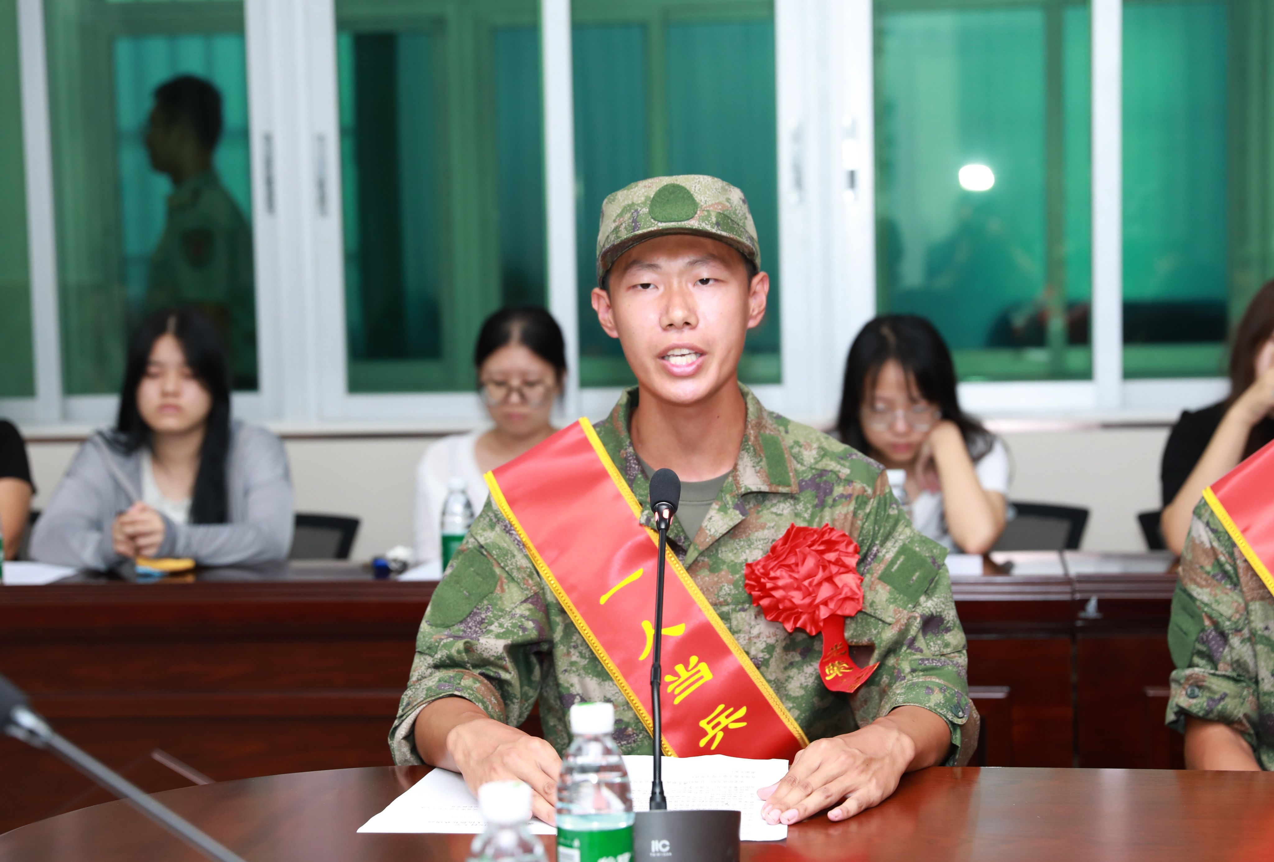 王永霖作为入伍学生代表发言。他表示,穿上军装是将个人成长融入国家命运的抉择,并呼吁更多同学参军报国,话语中满是决心和担当。