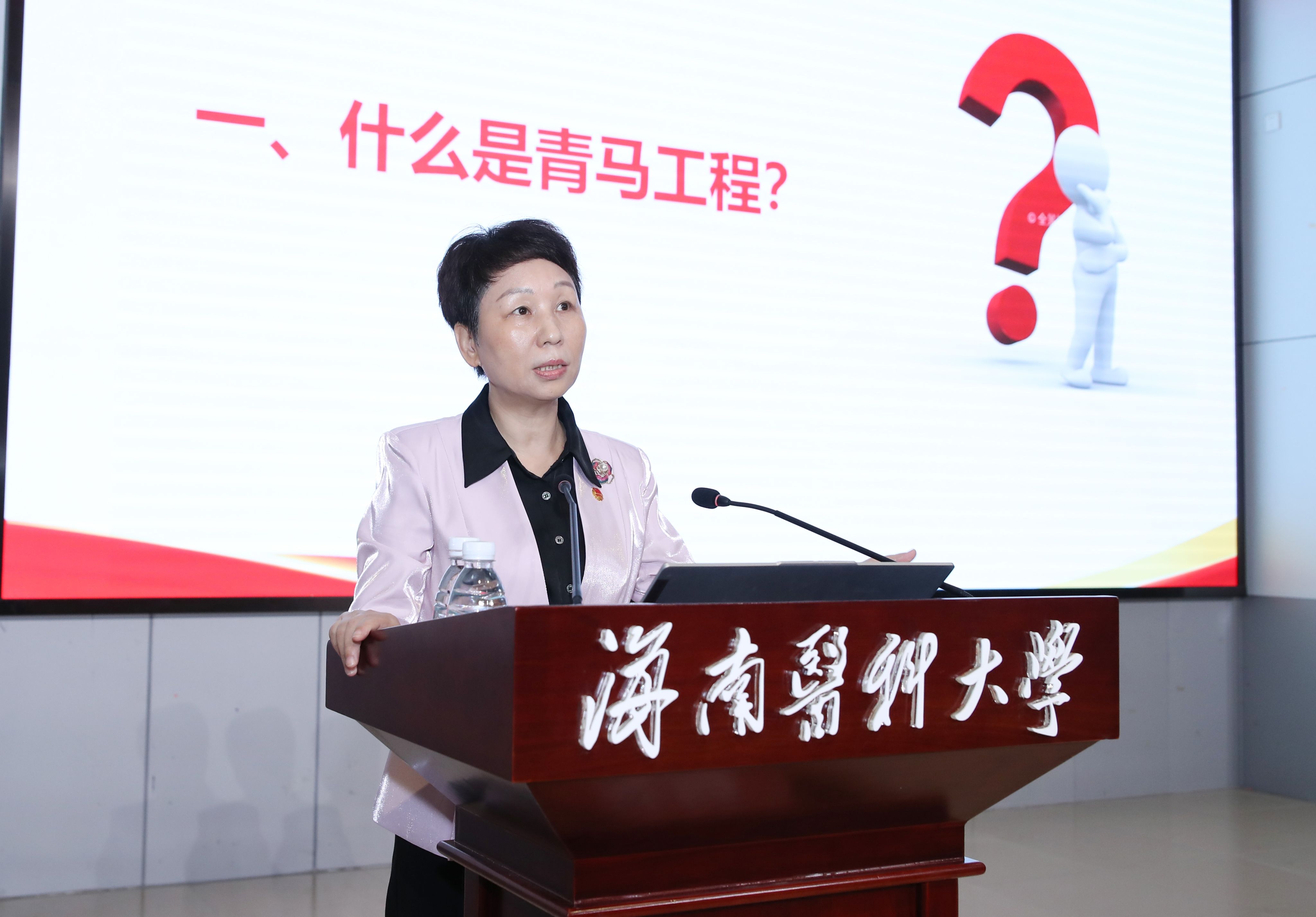 张彩虹以《从马克思主义那里寻求“真经”——做又红又专的新时代接班人》为题,围绕什么是青马工程、为什么要实施青马工程、什么是马克思主义、怎样对待和运用马克思主义四大核心问题展开系统讲授。她指出,青马工程是培养青年马克思主义者的“政治熔炉”,是学校落实立德树人根本任务的关键抓手,更是培养堪当自贸港建设重任和民族复兴大任的青年政治骨干的“铸魂工程”,必须以理论武装筑牢信仰之基,以实践锤炼锻造过硬本领。当前海南自贸港建设进入封关运作倒计时阶段,迫切需要一批既懂马克思主义真理力量、又掌握扎实医学专业本领的青年先锋。在阐释“什么是马克思主义”时,张彩虹结合医学学科特点比喻:“马克思主义如同医学的‘基础理论’,既能够揭示社会发展的‘病理机制’,也能够提供解决问题的‘诊疗方案’,以其鲜明的科学性、人民性、实践性、发展开放性而成为我们认识世界、改造世界的‘金钥匙’。”对于“怎样对待和运用马克思主义”,张彩虹强调,要坚决反对把马克思主义教条化的错误倾向,将其作为科学的世界观和方法论来指导实践,要践行矛盾分析法,提升辩证思维能力;要践行现象本质论,透过现象看本质;要践行实践认识论,推动实践与理论创新良性互动;要践行实事求是,以科学精神推动学术创新;要践行人民至上,涵养人文情怀,青年要以正确的“三观”指导自身选择,在考验中实现人生升华与超越,让理论之光照亮实践之路。