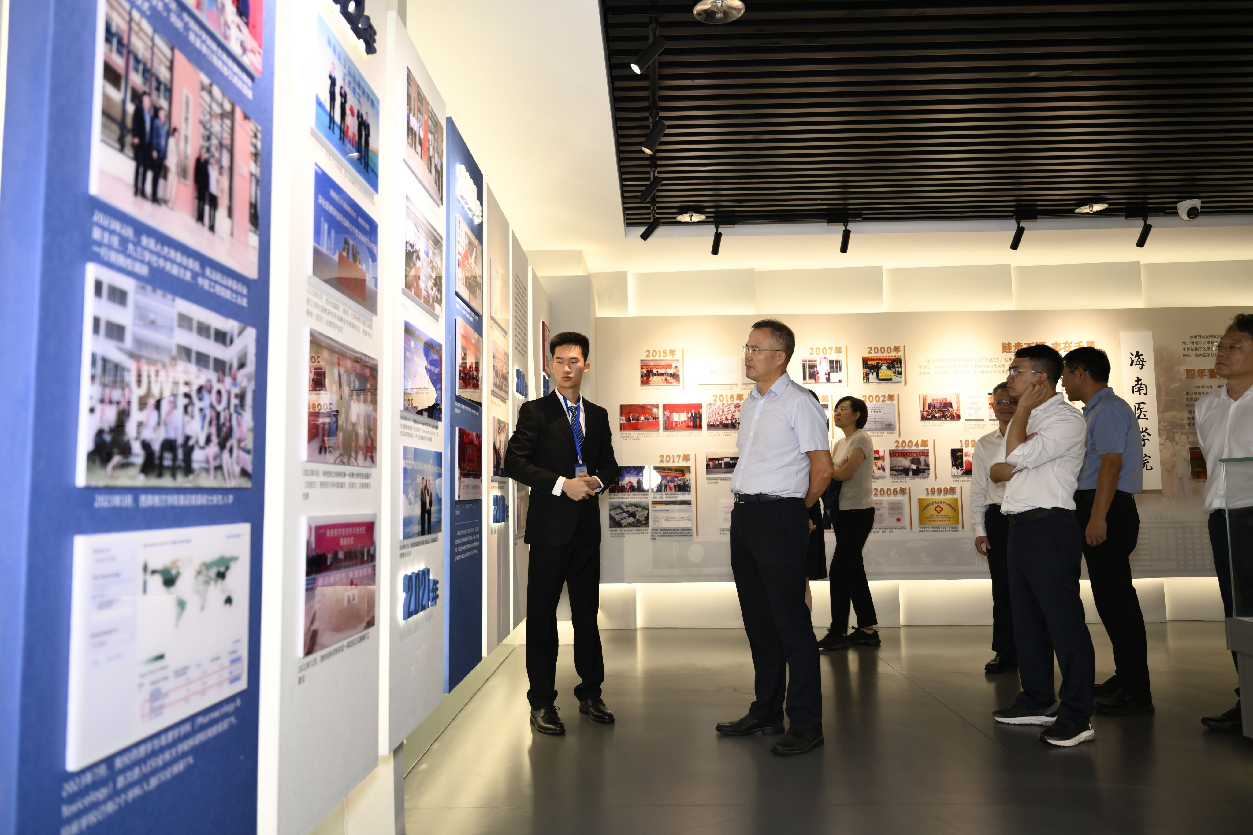 会前,贾彬还陪同张玉润一行走访了海南省医学科学院并参观我校校史馆,详细了解学校科研平台建设、人才引育成效以及发展历程。